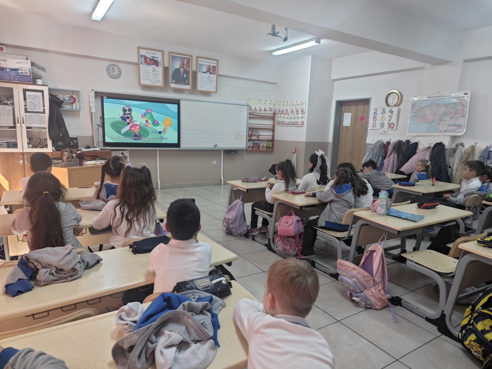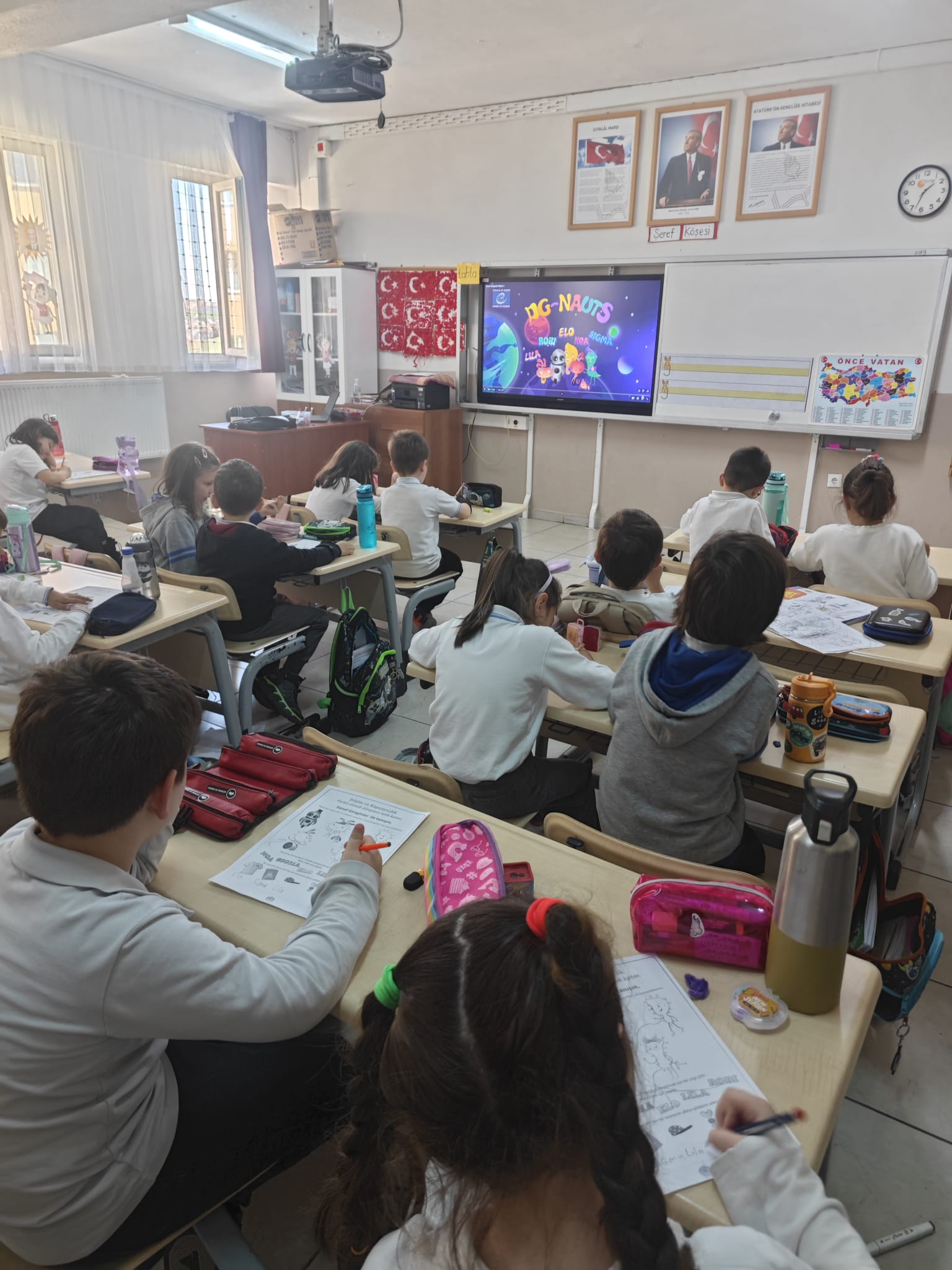 Pilot okulumuz Bandırma Cumhuriyet İlkokulu dijital vatandaşlık eğitimine yönelik çalışmalara devam ediyor. Avrupa Konseyi tarafından geliştirilen Sanal Gezginler (Digi-Nauts) video serisi, anasınıflarından sonra bu kez 1. sınıf öğrencileriyle buluşturuldu.