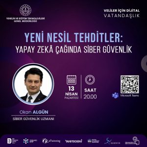 Alanında uzman bakış açısıyla, “Yeni Nesil Tehditler:Yapay Zekâ Çağında Siber Güvenlik ” konu başlığıyla dijital vatandaşlığın aileler için önemini bizlerle paylaşacak.